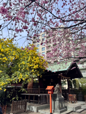 桜とミモザと両方咲いてる神社なんて素敵過ぎる!