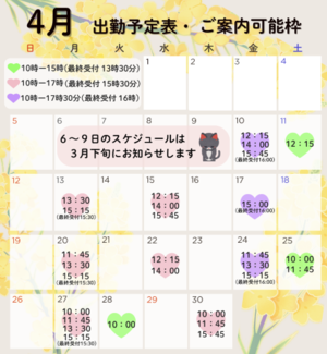 4月のスケジュールが出ましたので、