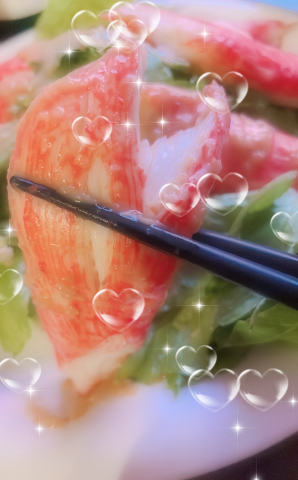 おっきなカニカマ?発見して大満足サラダ?