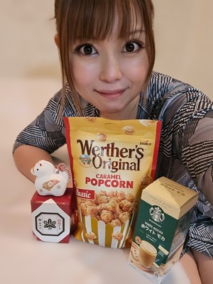 キャラメルポップコーン、スタバのホワイトモカ、午の置物、ありがとうございました