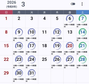 3月の出勤予定です。