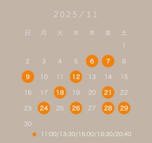 11/7、11/26、11/28、11/29はご予約受付終了しております