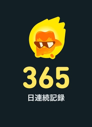 最近Duolingo365日連続突破したんですよ!