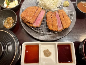 昨日食べたとても美味しい牛カツを添えて