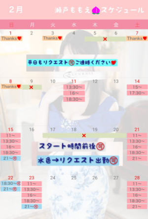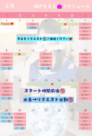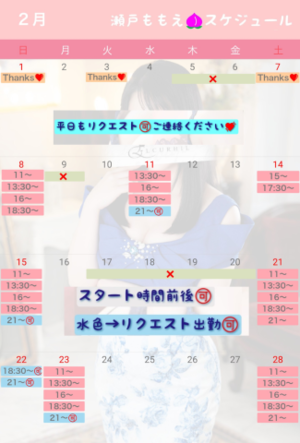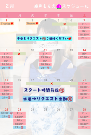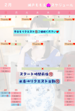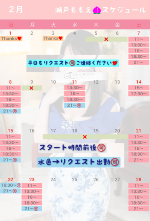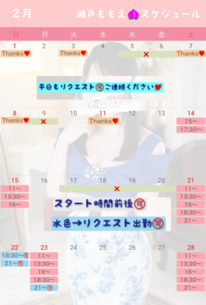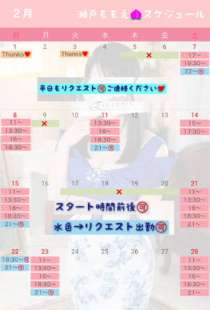 2/22(土)と24(月祝)はももえ出勤確定!お見逃しなく?
