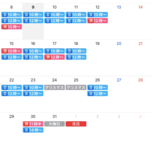 お部屋のない日や時間帯があります!
