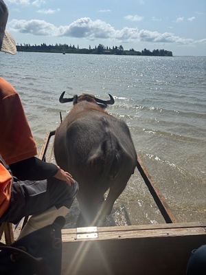 西表島、竹富島にも上陸し、海の中を水牛車?に乗り渡ります。