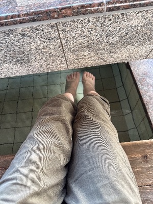 よく歩いたので、足湯中〜なぜか写真が逆向いちゃった…