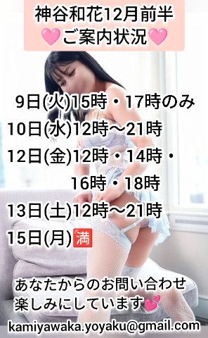 12月後半は残り僅かのお日にちもありますので、お早めにご連絡もらえたら嬉しいです?