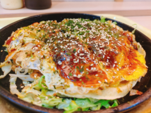 このイスに座って食べたものは…お好み焼き?