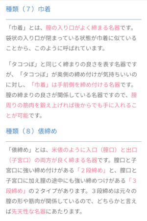 「ナカがすごい」「うごめく」「ナカの一部分だけすごいところがある」「名器だよね」