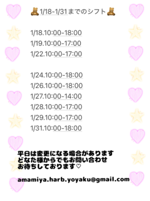 月末までのシフトをUPしました