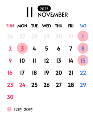 11月はこのような感じになりそう。