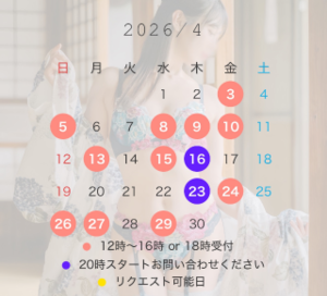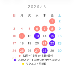 (20時のお枠は直接のご連絡のみ)