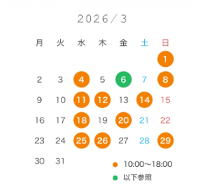 出勤時間外ご希望の方は前日までご連絡ください