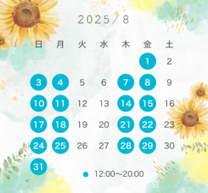 9月は遅めの夏休みで全日おやすみなので8月中にお会いできたら嬉しいです?