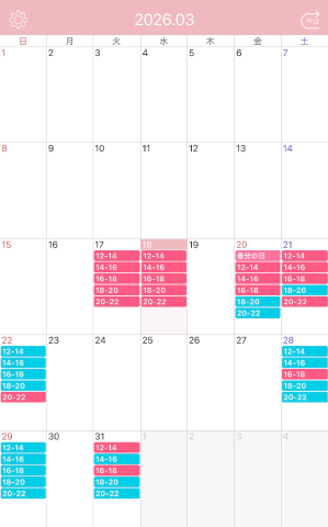 次回の出勤は?3/20(金)12時〜20時