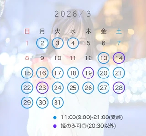 丸がついていない日でも時間によって出勤可能ですのでお問い合わせください
