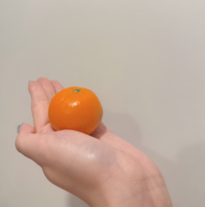 手のひらサイズでこたつで食べたくなりますが、みかんではなくオレンジです?