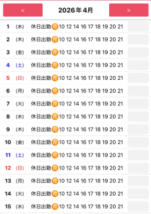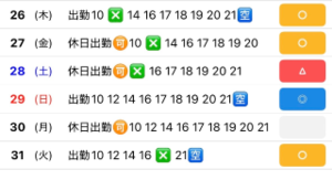 来月のシフトは