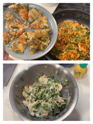 と、春菊のチヂミをキムチありと