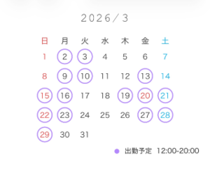 2月、3月の予約も承っており、既にシフト出てますので良かったら直接会って色々お話したり、イチャイチャできたら嬉しいです??
