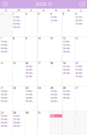 12/1(月)11:00~/13:30~/16:00~