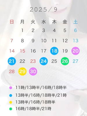 9月後半の出勤予定