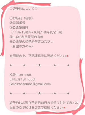 ご予約はもえを通しての姫予約がモチベーションアップに繋がるため嬉しいです❣️