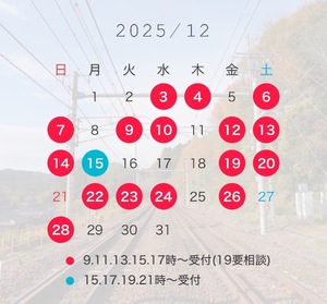 〜12月の出勤予定〜