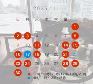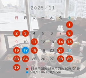 土日平日関わらず11.13.15.17時のお時間帯は