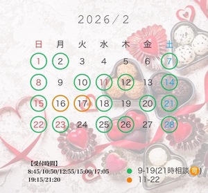事前予??めちゃくちゃ嬉しいです…??事前に遅番の時間のお問い合わせがあった日は遅番に変更したり(逆もしかり)お問い合わせがない日はタイミング見て休みにしたりしているので、事前予??してくださると、確実に好きな時間に予約が取れると思います??