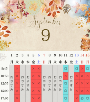 明日は、【8:45|12:55|15:00|17:05】