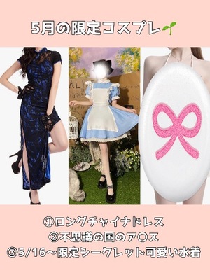 5月の限定は?ロングチャイナドレス???不思議の国のア〇ス?シークレット可愛い水着?