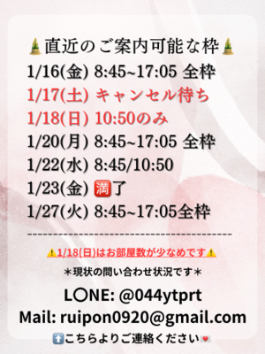 *1/17(土)はお部屋満室となっておりますので、キャンセルが出次第のご案内となります?