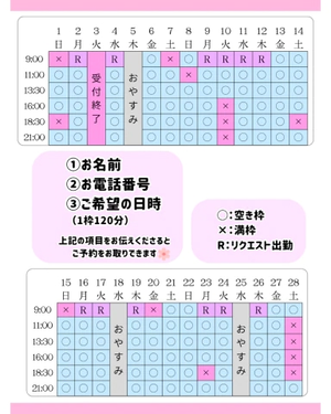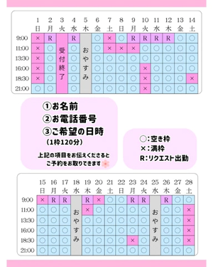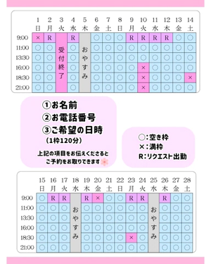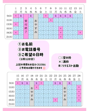 2月の空き枠です