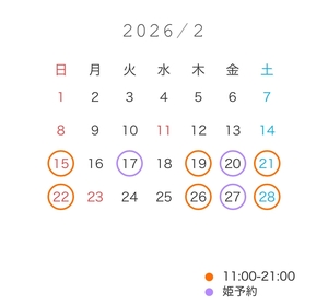 20日 姫予約のみ