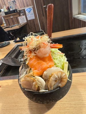 今日は久しぶりに夜ごはんにもんじゃ食べてきたよ