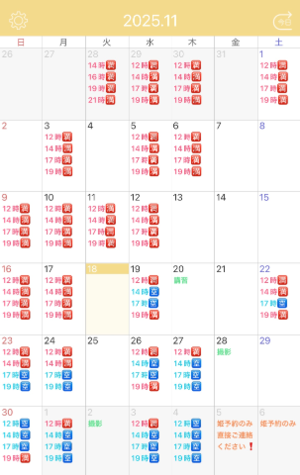 次回11/19(水)14時17時枠ご案内可能です?
