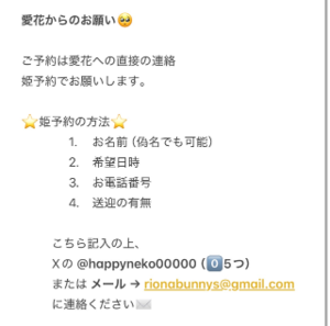 ご予約は愛花への直接の連絡