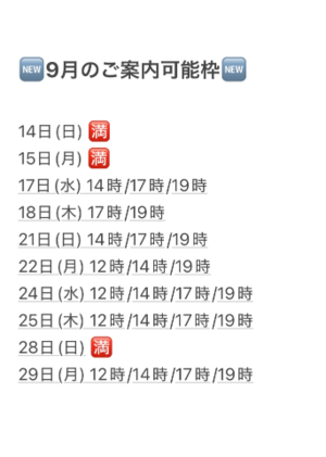 14時/17時/19時 まだ余裕ありますので