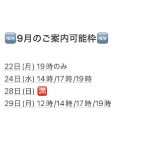 9月の日曜日はこの枠のみになります!
