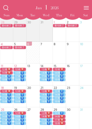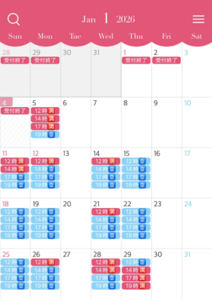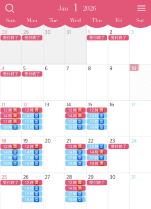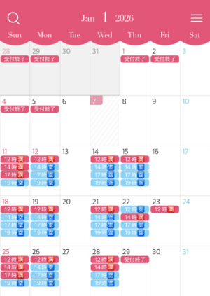人気の休日もまだまだお約束可能な枠あるので