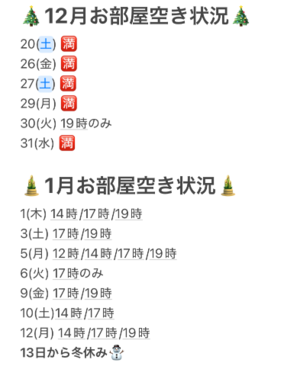12月は《12/30・19時枠》のみ