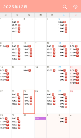12月後半のご案内させていただけるお時間は