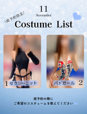 ?コスプレ(月限定よりお選びください。ない場合はお店の制服、イベント中はイベント衣装)