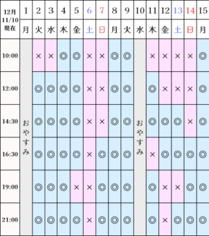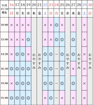 ?空き状況(11/10現在)