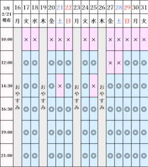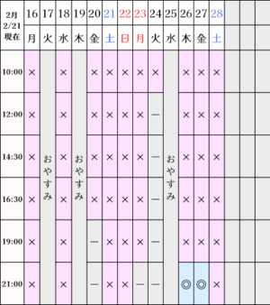 現在の空き状況です