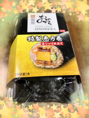 安達みゆちゃんから【銀座おのでらの特製恵方巻】を頂き、先程【南南東】を向いてペロリといただきましたー!???