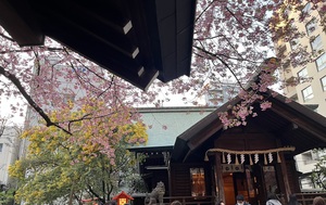 行きつけのカフェの向かい側がこの神社で、綺麗な二色の満開を楽しめます。